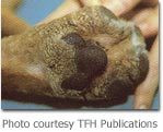 morbillivirus。這種病原在一般環(huán)境中不穩(wěn)定,陽光、高溫及肥皂等一些消毒劑都可以使病毒失去感染能力。而犬瘟熱病毒大多存在于病犬的分泌物或排泄物中,尤其是病犬的口鼻分泌物。就算病犬已經(jīng)在恢復期了,仍然會繼續(xù)排毒。而犬瘟熱是全年齡的狗都會感染的,年紀越小,癥狀越嚴重,尤其是沒有打過疫苗的幼犬,死亡率高達8成以上。由于病毒造成全身性的感染,因此會出現(xiàn)許多不同的臨床癥狀。而病犬的腳底會因為上皮細胞的過度角化而變厚變硬,因此犬瘟熱又稱“硬蹠癥”。